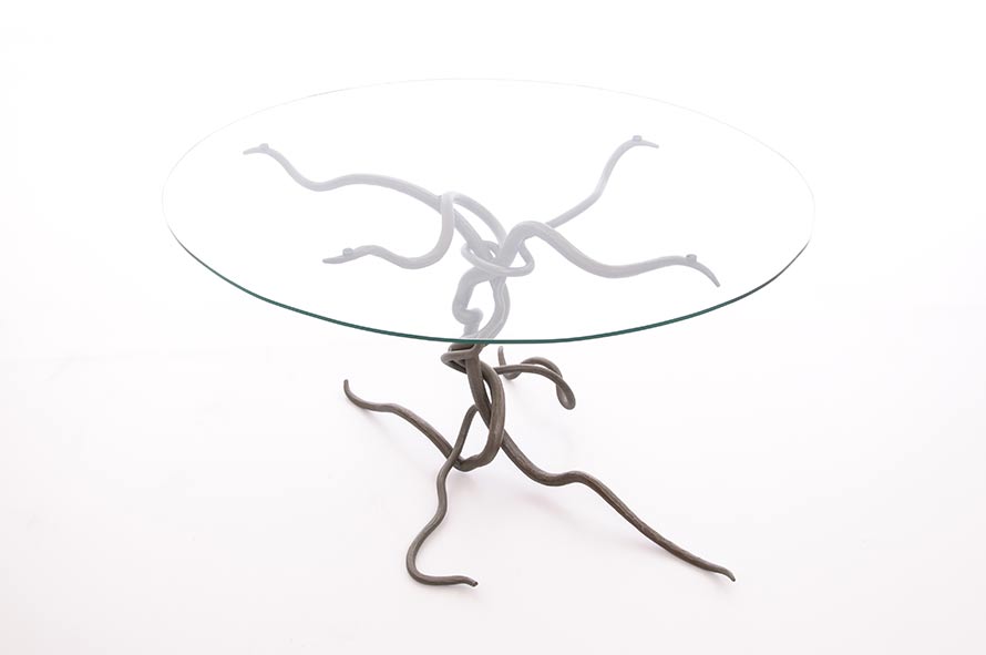 A collection of forged wrought iron furniture and associated fittings designed and made by artist blacksmith Julian Wadsworth.